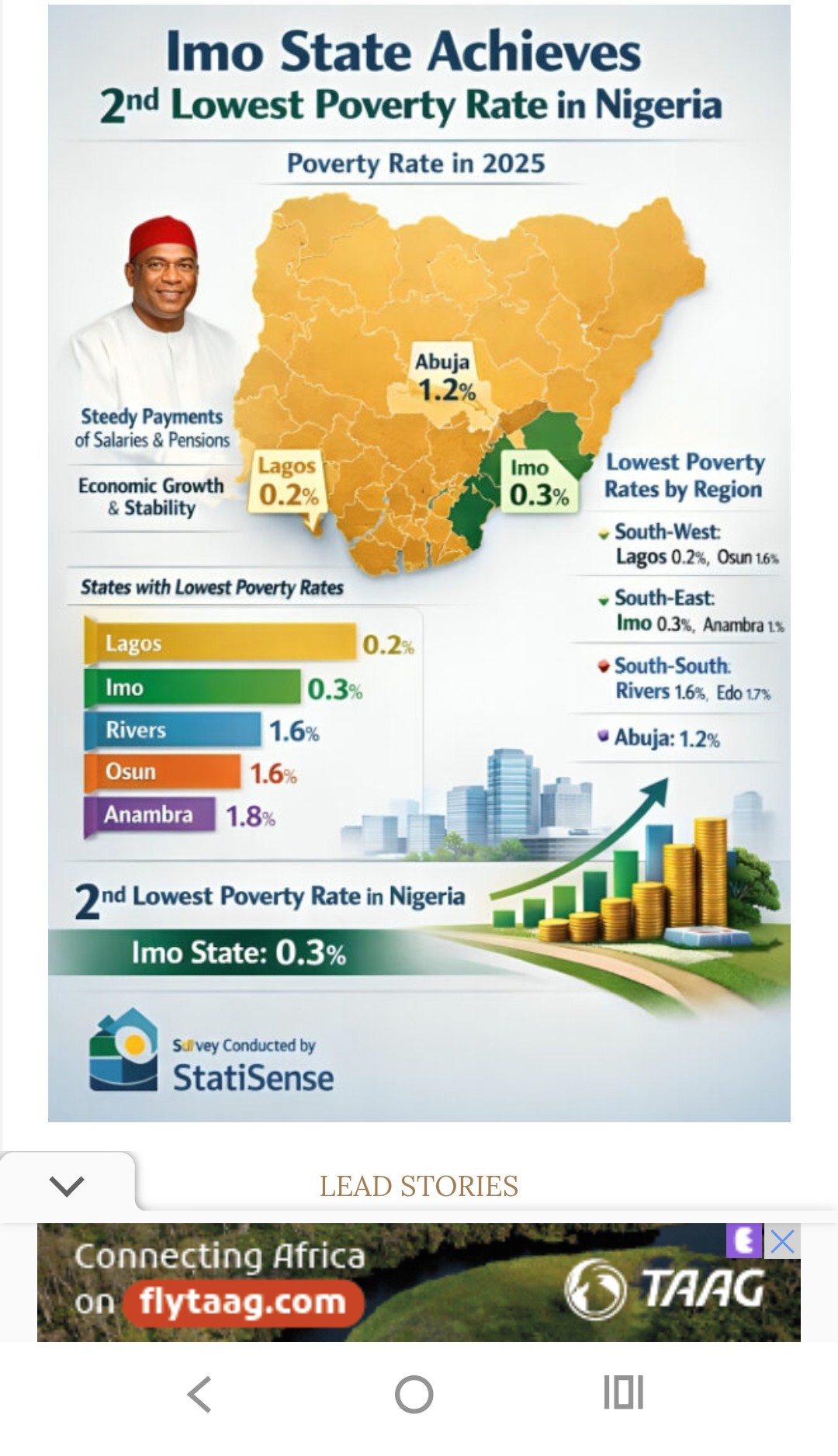 In a nationwide survey on the performance of the 36 states and Abuja in the management of poverty, Imo recorded the second-lowest poverty rate in Nigeria.